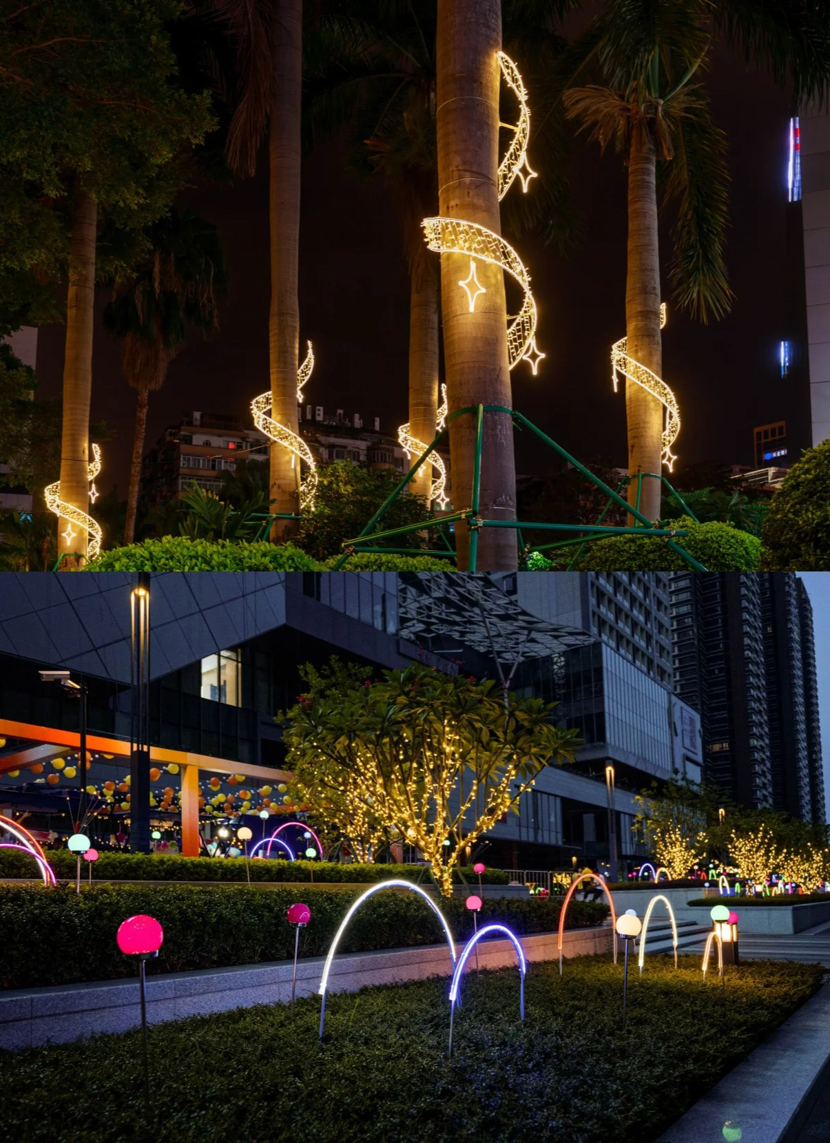 Throughout the garden, you'll find creatively designed shaped lamps that mimic elements found in nature, such as leaves, flowers, and animals. These artistic fixtures not only provide ambient lighting but also serve as points of interest, inviting visitors to explore and interact with their surroundings. The shapes are crafted from eco-friendly materials and are powered by solar energy, aligning with the garden's commitment to sustainability.
